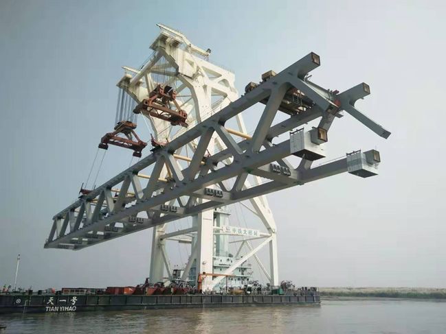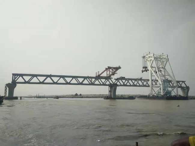 2019年10月24日,帕德玛河上又一跨钢梁缓缓升起,4E跨钢梁吊装架设,经过3天的安装、调整、定位,成功实现第14跨钢梁合龙安装,帕德玛桥家庭再添新丁。